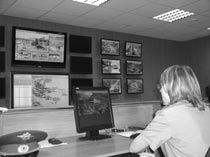 В просторном зале центра управления нарядами всегда прохладно -- чтобы не перегревались серверы, сохраняющие информацию. Экраны показывают происходящее на улицах. Угол обзора камер составляет 180 градусов, они могут поворачиваться и приближать изображение так, что можно распознать автомобильные номера.