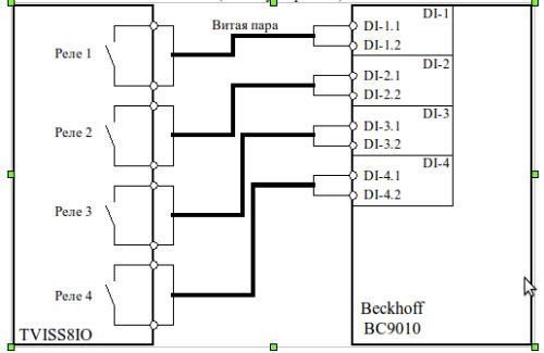 Релейные сигналы воспринимаются дискретным модулем контроллера Beckhoff.