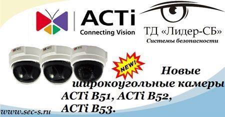 По мнению специалистов ТД «Лидер-СБ», новые видеокамеры B51, B52 и B53 от компании ACTi являются подходящим решением для организации видеонаблюдения в офисах, на складах и в других местах с обширной площадью.
