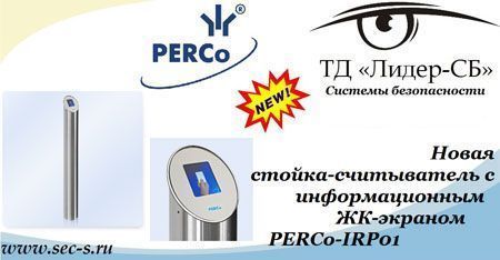 Новую стойку-считыватель с информационным ЖК-экраном PERCo-IRP01 представил Торговый дом «Лидер-СБ». Она позволяет оборудовать пропускной пункт считывателем бесконтактных карт доступа, а также визуально информировать посетителей и сотрудников о запрете или разрешении прохода.