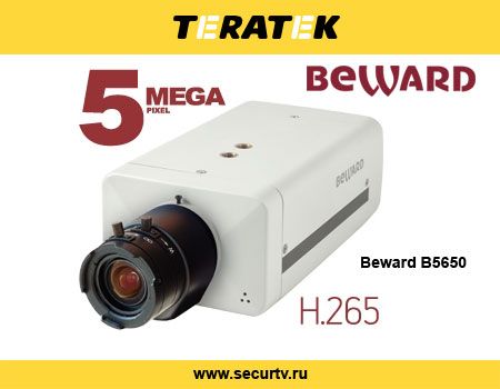 В компании «ТЕРАТЕК» появилась новая IP-камера Beward В5650, в которой изображение сжимается кодеком H.265. Она имеет стандартное исполнение и предназначена для использования в помещении.
