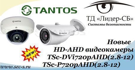 Новые камеры Tantos TSc-DVi720pAHD (2.8-12) и TSc-P720pAHD (2.8-12), работающие в формате AHD, представил Торговый дом «Лидер-СБ». Обе новинки снабжены вариофокальным объективом с фокусным расстоянием, меняющимся от 2,8 до 12 мм, и предназначены для использования на улице. Наличие вариофокального объектива упрощает настройку сектора обзора камеры.