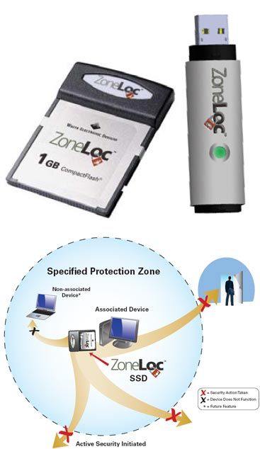 С помощью технологии ZoneLoc ценная информация защищается от попадания в чужие руки. Специальный "контроллер зоны" следит за тем, чтобы охраняемое с его помощью запоминающее устройство не удалялось далее, чем на определенное расстояние, которое может установить сам пользователь. Максимальное значение этого расстояния -- 10 метров.