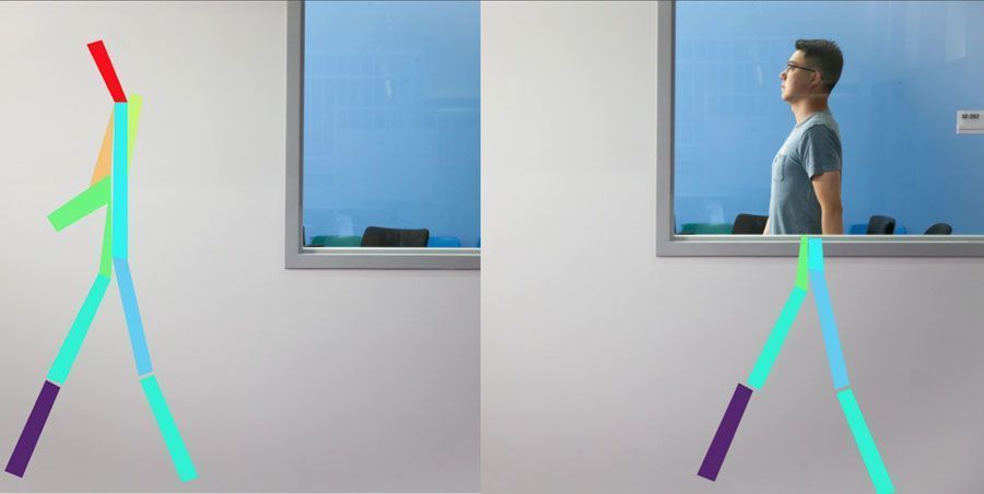 Из этих изображений извлекались очертания людей, представленные в виде палочек, изображающих туловище, руки, ноги. Их показывали нейронной сети вместе с записанной при этом картиной радиосигнала. По таким комбинациям сеть училась понимать соответствие между распределением радиосигнала и положением тела человека. Научившись, сеть может по радиосигналу восстанавливать положение человека. Она способна проследить, как человек идёт, останавливается, садится и поднимает руку.