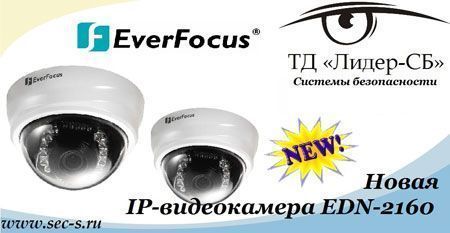 Новая бюджетная купольная IP-видеокамера EverFocus EDN-2160 пополнила ассортимент Торгового дома «Лидер-СБ». Она имеет мегапиксельное разрешение (1280х800) и формирует изображение с хорошей чёткостью.